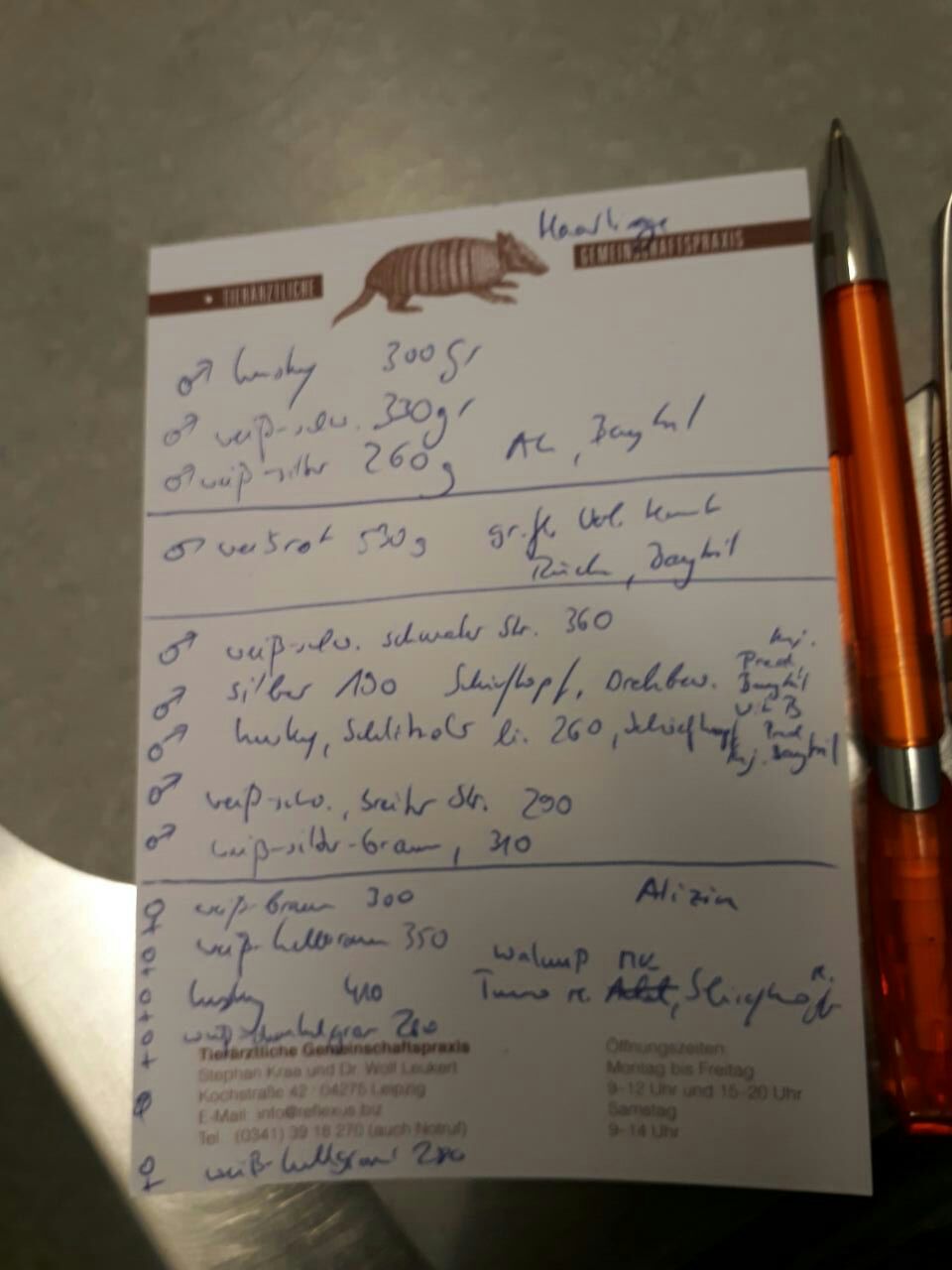 Der Horrorfall der Müchelner Vermehrerauflösung mit 14 Tieren wird uns noch lange in Erinnerung bleiben. Ein Mädchen mussten wir einschläfern lassen, ansonsten gab es Würmer, Schiefköpfchen, Tumore, Atemwegserkrankungen, Ekzeme...